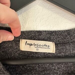 Stay cozy and casual in this gray long sleeve sweatshirt by Impressions. Features a roomy front pocket and soft fabric for everyday comfort. Perfect for lounging or layering. Size 1X and in great condition.