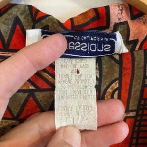 Impressions Of California Aztec Geometric Tiki Red Vintage Shirt size 14, 1970s . Condition is Pre-owned, great condition. No flaws. Measurements: 21 inch chest 20 inch waist 26 inch length