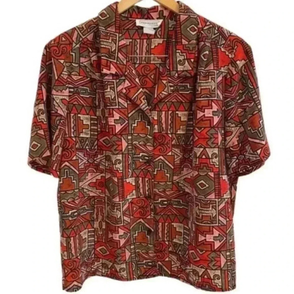 Impressions Of California Aztec Geometric Tiki Red Vintage Shirt size 14, 1970s