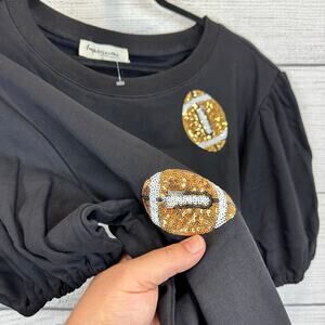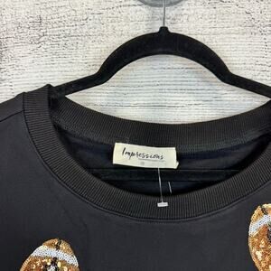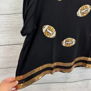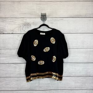 Impressions Plus Size Black & Gold Sequin Football Puff Sleeve Top Size 3X