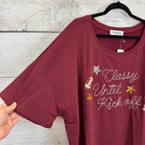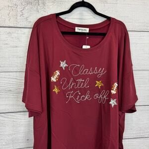 Impressions Plus Size Maroon "Classy Until Kickoff" Sequin Football Top Size 3X