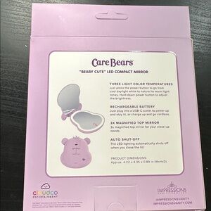 Impressions Vanity Care Bears Cheer Bear Beary Cute LED Compact Mirror for Purse, Travel Lighted Makeup Mirror with 3X Magnification, Adjustable Brightness, Touch Sensor, and Figural Shaped Design