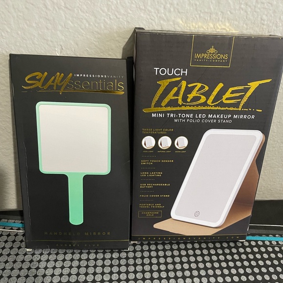 Brand New Impressions Vanity handheld makeup mirror w/ mini tri-tone LED makeup mirror. Selling together.
