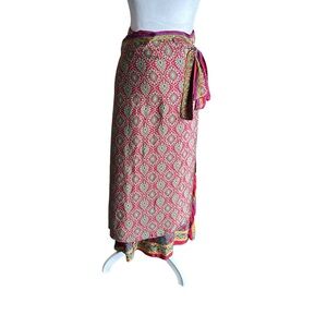 Bold skirt by Impressions. Features red, teal, and gold patterns. Eye-catching design. Iris Impressions Silk Blend Pink Reversible Tie Waist Floral Wrap Skirt Size S/M
