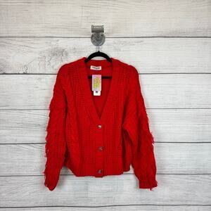 Impressions Women's Red Woven Knit Fringe Button Up Cardigan Size Medium