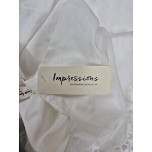 Discover the beautiful Impressions Embroidered Maxi Dress in a lovely white-on-white design, perfect for weddings, summer beach outings, or travel! This size 1X dress is brand new with tags and is sure to make you feel elegant and comfortable wherever you go.
