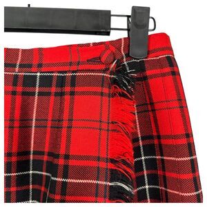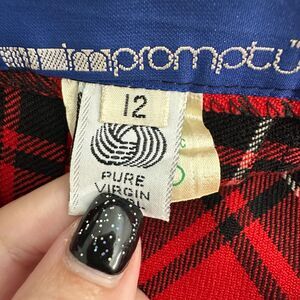 Impromptu Vintage Pure Virgin Wool Holiday Plaid Red Wrap Midi Skirt Size 12