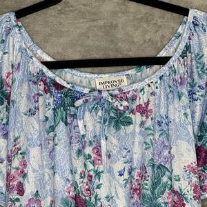 Improved Living 3X Shirt Top Blue Floral Flower Short Sleeve Scoop Neck Womens