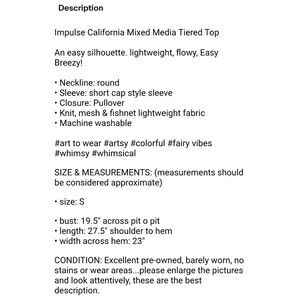 Impulse California Mixed Media Tiered Top Size S Abstract Print Wearable Art