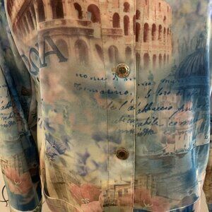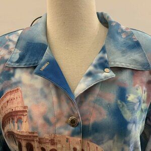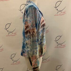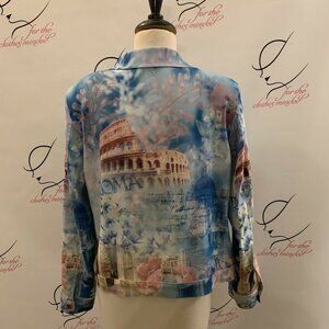 Impulse California. Size M. USA. Influences of Rome Jacket. Button Cuff. Center back length is 21.8". Sleeve length is 23.* with button cuff. Bust is 41". Beautiful Roman Designs.