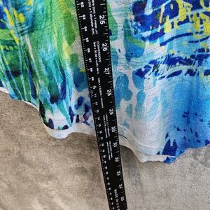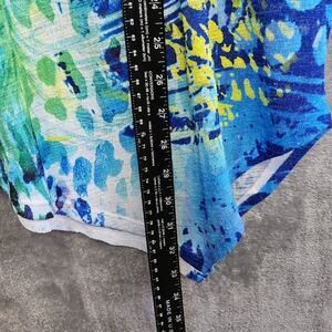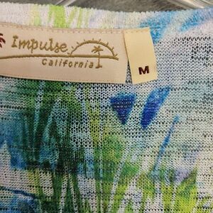 Impulse California women's sz Med top blue yellow vneck long sleeve USA tunic