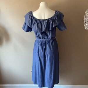 Impulsive Women’s Chambray Fit And Flare Ruffle Midi Dress Plus Size 3X