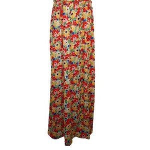 In April 1986 Womens Maxi Dress Orange Yellow Lurex Floral Ruffle Empire Waist S