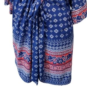 Stretch jersey robe with an ethnic bohemian style border print in a diamond and floral design.