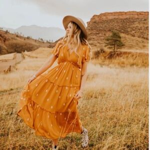In Bloom Embroidered Terracotta Maxi Dress - women's size small