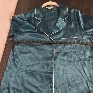 In Bloom Jonquil Teal Blue Satin PJ Set Size Medium