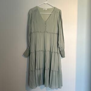 In Bloom Midi Tiered Long-Sleeve V-Neck Dress – Sage Green, Women’s Medium