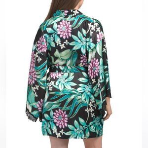 In BloomβM-L-XL Green Pink White Satin Floral Short Kimono Robe