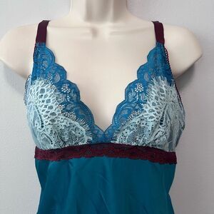 In Bloom by Jonquill Teal 2-Piece Satin/Lace Cami Short Set Size S/M