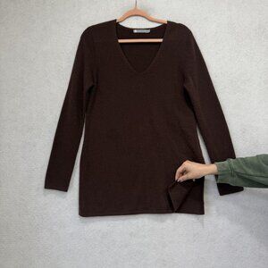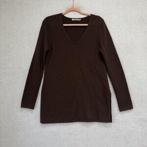 In Cashmere Sweater Womens Medium Brown V Neck Tunic 100% Cashmere Long Sleeve