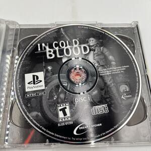 The product is a rare Sony PlayStation 1 game, In Cold Blood, released in 2001. It is complete in box (CIB) and has a T-Teen rating. DreamCatcher Interactive published the shooter game, which is part of the In Cold Blood series. The game was manufactured in Canada, specifically designed for NTSC-U/C regions.