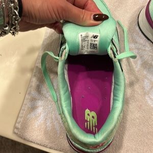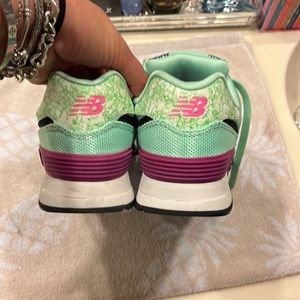These babies are 💨🔥like green with fuchsia, hot pink white & black with these dope ass woven looking 👀 material on full tongue 😜 I don’t even think 🤔 I wore these outside the house, bottoms are clean! Minor marks on soles & by shoelaces etc from being next to my other sneakers