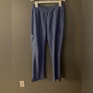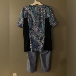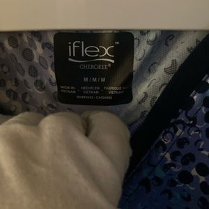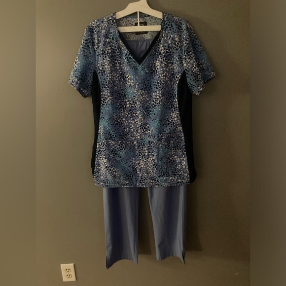 IFLEX by Cherokee Top and Dickies bottom. They match beautifully and are in excellent condition. Both are size medium. The top has three front pockets and the bottoms have two front pockets +2 back pockets +2 side pockets. Periwinkle blue shade.