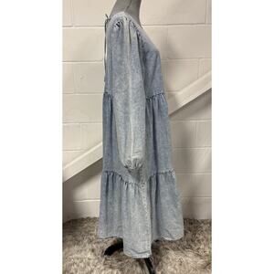 #SizeM #MidiDress #BohoStyle #CasualStyle #WesternStyle #TieredDress #BlueDress #DenimDress #CottonDress #FallFashion #WomensFashion #LongSleeveDress #CrewNeck #PulloverDress #SeamPockets #BreathableFabric #MachineWashable #LosAngelesStyle #NWT #NewWithTags #RegularSize #WomensClothing