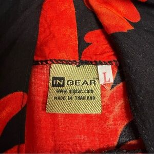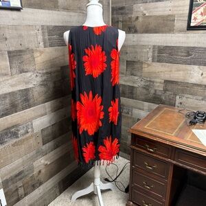In Gear size large Floral Black and Red Swim Cover-Up with fringe