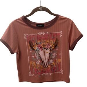 In Girl Wild Heart Rodeo Ranch Graphic Tee YL (14) Ribbed Copper