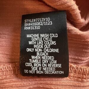 Soft ribbed stretch knit in a burnt sienna/copper tone (close-ups show true color).