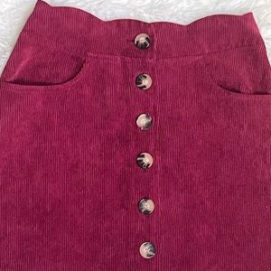 In Girl burgundy petal tulip waist button front corduroy skirt Sz 10/12.