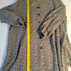 In Group II 2X mini dress w-side slits or tunic top black w-ivory beige floral print