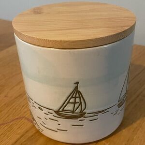 In Homestylez Cream Nautical Themed Ceramic Storage Dish with Wooden Lid