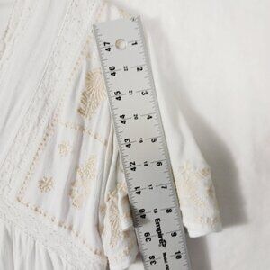 In Loom, Boho Top, Small, White with Tan Embroidery Detail and Lace Trim, Beachy