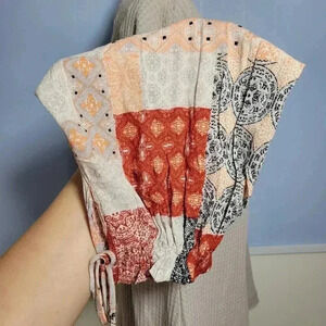 In Loom Large Pink Waffle Knit Patchwork Contrast Long Sleeve Boho Top NWT