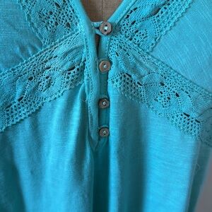 In Loom Small Turquoise Lace Top Short Sleeve Button Detail V-Neck NWT
