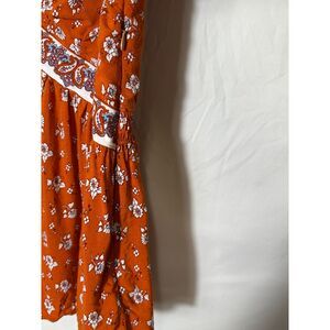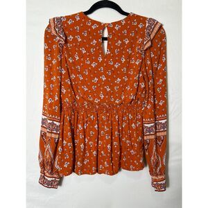 In Loom Women's BOHO Burnt Orange Lined Deep V-Neck Paisley Blouse Size S