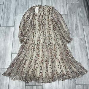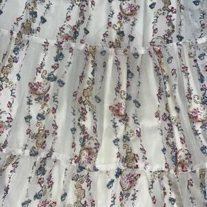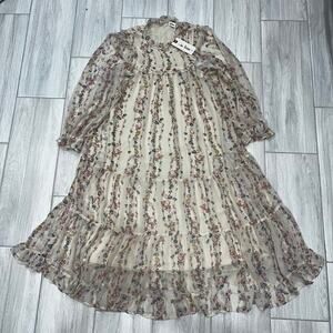 Bohemian In Loom women's size medium cream ivory floral tiered chiffon overlay babydoll midi dress. New with tags from a smoke free home. from a smoke free home.