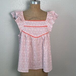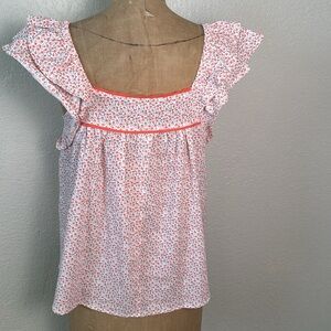 In Loom Womens Small Coral Ruffle Sleeveless Floral Top Square Neck Flowy NWT