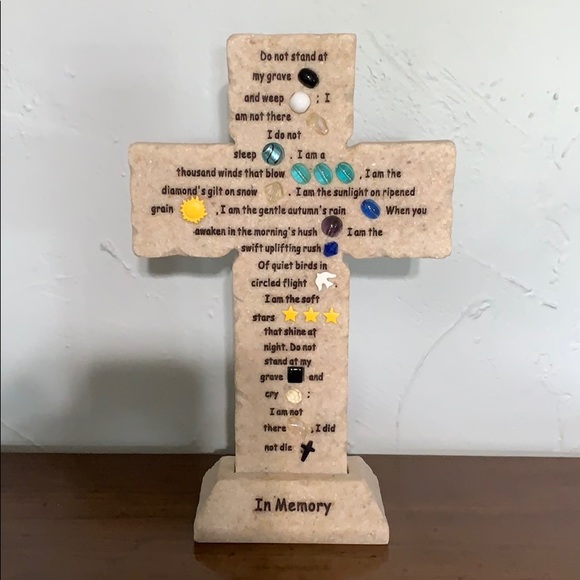 New. Poem Do Not Stand at My Grave and Weep on sandstone 2 piece magnetic base( see photos) or can hang on wall. Purchased from Hallmark store never used.