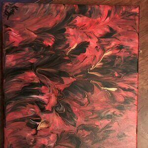 Fluid art painting using acrylic paint and gold metallic paint. Beautiful small painting, so soothing. Painting is on paint on the side canvas, wired and ready to hang. Size is eight inches by six inches. Original art by me.