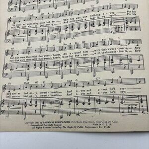 This vintage 1943 sheet music, "In My Arms," composed by Frank Loesser and Ted Grouya, was featured in the classic MGM film "See Here, Private Hargrove," starring Robert Walker and Donna Reed. A timeless relic of musical and cinematic history, it reflects World War II-era charm, patriotism, and romance.