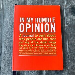 “In My Humble Opinion” large size journal writing book to vent about people. Great gift! Unused, no writing inside, just shows some minor wear on edges and cover from storage.