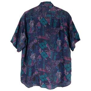 In Private Purple/Blue Geometric Print Collared Button Down Size M 100% SILK