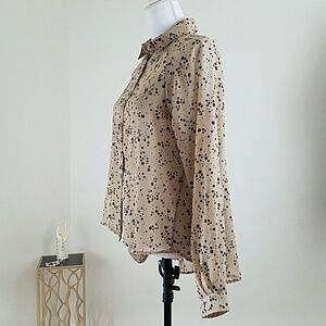 Beige/Black Polka Dots Blouse Button Down Shirt Size M NWT New With Tags.
