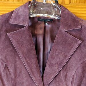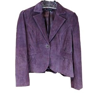 In Suede Aubergine Leather Jacket Womens 1 Button Cropped New with Tags LG