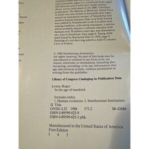 In The Age Of Mankind Hardcover Book Roger Lewin Smithsonian 1988 First Edition
