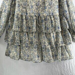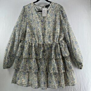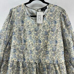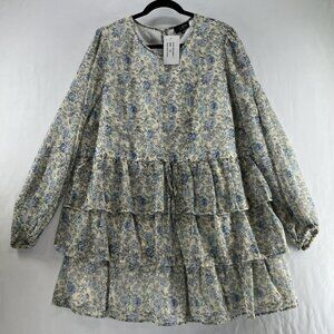 In The Style Balloon Sleeve Tiered Mini Dress Sz 20 Drawstring Waist Floral Blue