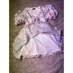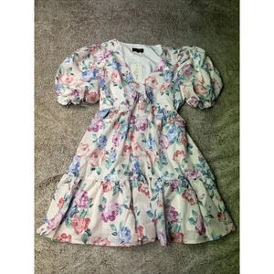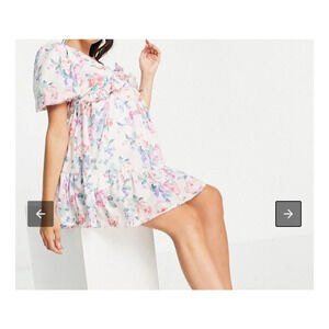 In The Style Maternity x Elle Darby puff sleeve frill detail smock dress in multi floral Us 6 - UK 10 New